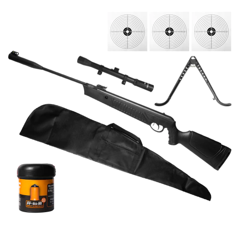 CARABINA PRESSÃO GÁS RAM ULTIMATE 4,5MM - EKOL+CAPA+HELLB+LUNETA+ALVO